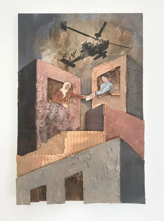 التقت نسرين التي تبلغ من العمر 31 سنة بزوجها فراس "من خلال نافذة" في مسقط رأسها بمدينة دمشق. فراس كان جارها ويكبرها في العمر بتسع سنوات، وعندما بلغت سن الرابعة عشرة أدركت نسرين بأنها وقعت في حبه. فكتبت إليه رسالة تقترح فيها أن يتقابلا، وقامت بطيّها حول صخرة ثم رمتها نحو نافذته المفتوحة، وهكذا كانت بداية التواصل حيث استمرت بينهما بشكل منتظم. يقول: "لقد كتبت لي 600 رسالة على الأرجح". وأتبع كلامه قائلا: "لقد احتفظت بهم جميعًا". تقدم فراس بطلب الزواج من نسرين إلى والديها مرات عديدة والتي بلغت ست مرات قبل أن يتم الإتفاق فيما بينهم. حين تزوجا، كانت قد بلغت السادسة عشرة من عمرها ولديهما الآن ثلاث بنات. نشأت الحرب الأهلية، وعلى الرغم من أنها كانت مفاجٍأه لهما في البداية، إلا أنهم لم يعوا خطورة الموقف بعد. يقول فراس: "لم نكن نتوقع أن تتفاقم المشكلة في قلب مدينة دمشق". ولكن لم يجدوا مفراً من مواجهة المشكله حيث أن منزلهم كان على بعد أقل من خمسة أميال من مبنى المخابرات (الشرطة السرية) والتي أصبحت منطقة متنازع عليها، وبالتالي تعطلت بسبب أعمال عنف المتتالية. ومنذ ذلك الحين توالت الأحداث المأساوية، ابتداءاً من انفجار سيارة مفخخة كانت تركن في الشارع على مقربه منهم، ومن ثم إصابة رجال بالرصاص على مرأئ من أطفالهم، وانتهاءاً باختطاف شقيق فراس الأكبر. تم طلب فدية حينها للإبقاء على حياته وإطلاق سراحه، ولكن لم تتمكن عائلة فراس من تحمل كلفتها ولا زال مصير الأخ مجهول بالنسبة إليهم. اضطر نسرين وفراس إلى مغادرة سوريا مع مبلغ زهيد من المال ما يعادل سبعة دولارات، وأمضيا أربع سنوات في الأردن إلى أن قَدِموا إلى الولايات المتحدة في عام 2016. تقول نسرين "لا أشعر بأننا نحرز تقدمًا" ، ، ويضيف فراس ، "في هذا المكان، يتبخر المال". أما عن تلك الرسائل، فقد تركوها خلفهم في المنزل السوري حيث اضطر نسرين وفراس إلى الفرار منذ أن تم تدميره. (الفنان: غولنور تولوغلو)